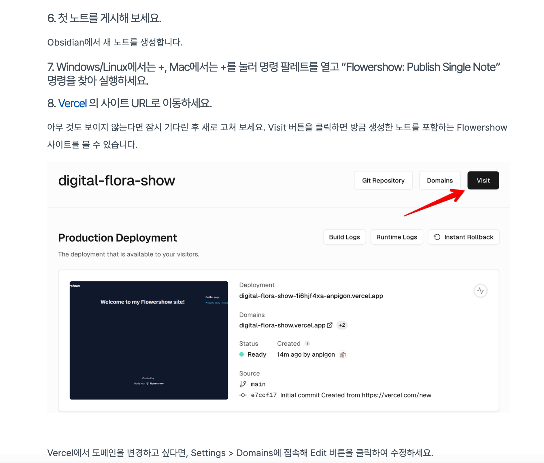 Flowershow: Publish Single Note 명령을 실행